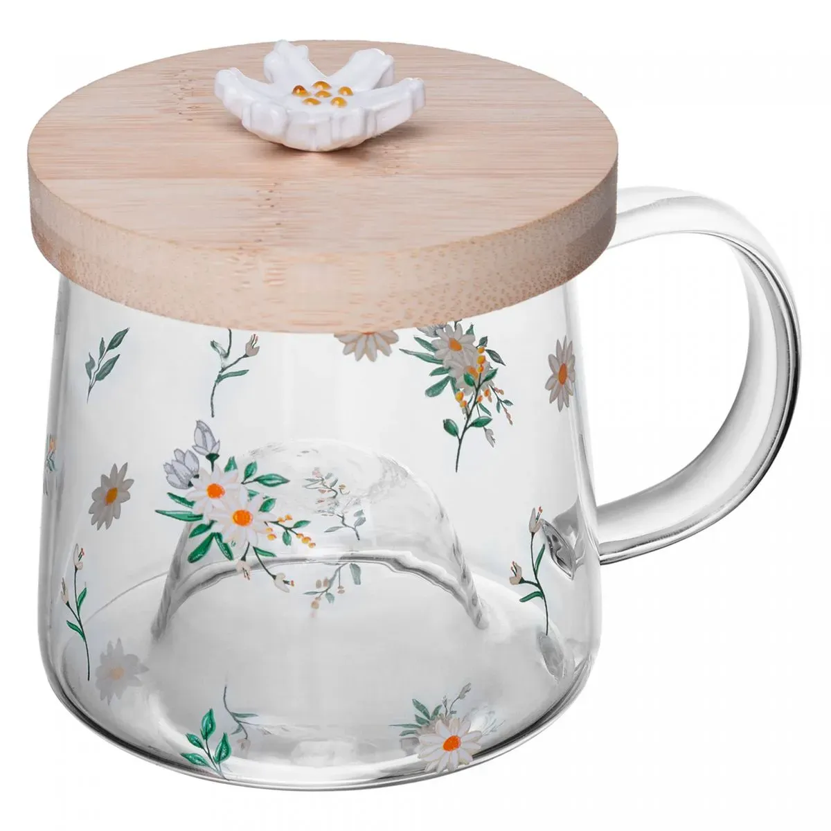 CANECA DE VIDRO BOROSSILICATO COM PIRES DE BAMBU DAISY 330ML