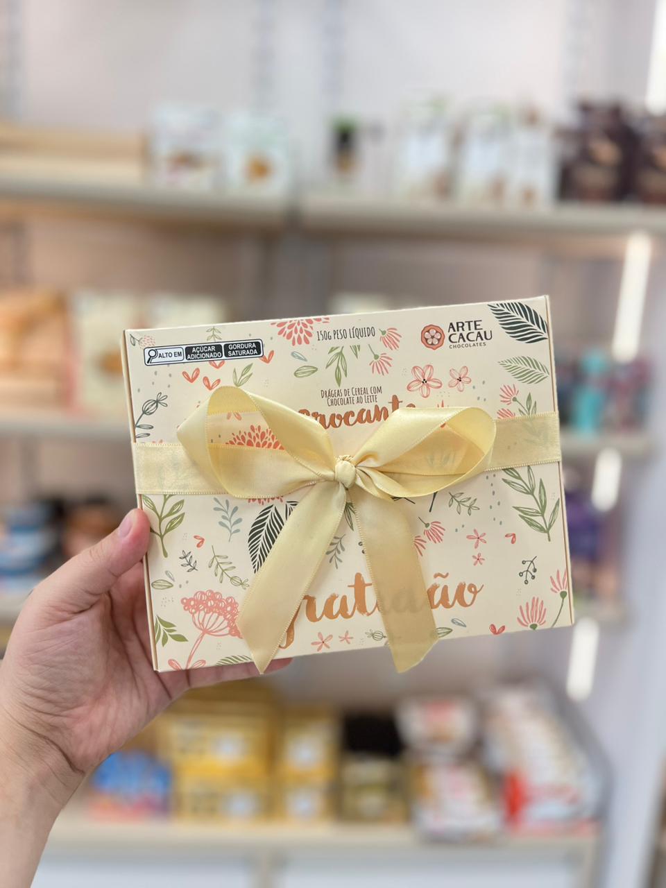 ESTOJO DE DRÁGEAS CROCANTE COM CHOCOLATE AO LEITE - 150g - COL. GRATIDÃO quantidade